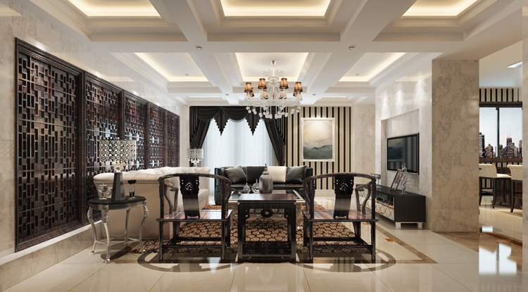 设计说明:明时分,当您卷起客厅的窗帘,透过全景落地窗,沿江美景一览无余,推开窗门,晨风习习,沁人心脾,晨光柔和缥缈,举目远望,仿佛安睡在一层青纱帐中,那么的恬静。客厅的灯光比窗外要明亮,光与影错综分明,吊顶周围的筒灯寥若晨星,很容易让人联想曹操的“月朗星稀,乌鹊南飞……”的诗句。软装配饰,富有韵味,沙发同中有异,茶几在四周沙发的中间,上面摆放着两本书,还有古朴的茶壶、水果盘,盘上放有金黄的橘子等水果,还有两个小小的碧玉色青花瓷瓶,上面插了两根红烛。这些点缀都富有诗意,也可以看出主人身居闹市,却有心远喧嚣,谈笑有鸿儒,闲来阅金经的高雅之趣。 夜幕降临,远眺窗外,那蓝色的天幕下闽江别有风味,一盏盏街灯闪亮,宛若璀璨群星,仿佛天上街市令人神游,又好像是张若虚《春江花月夜》中良辰美景令人心驰神往。夜深,卧室里,柔和的灯光最懂你的心,花瓶的花束最知你的情,躺在席梦思上,一帘幽梦到天明……